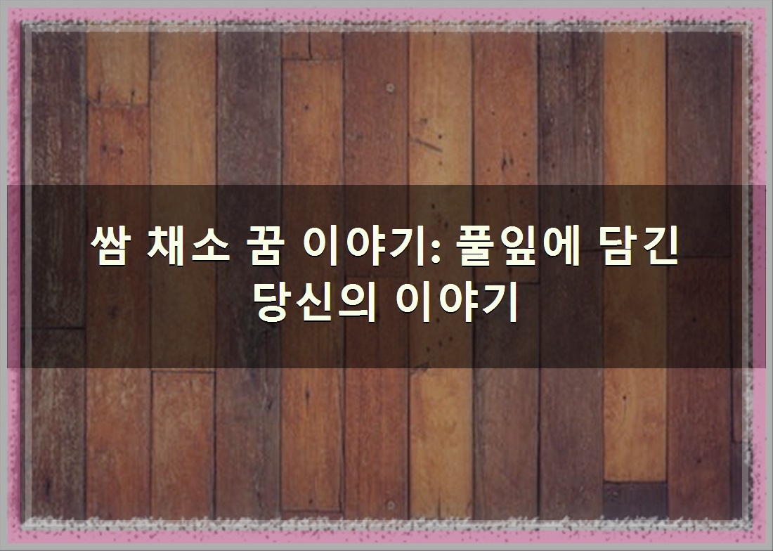 이처럼 쌈 채소 꿈은 다양한 이야기를 우리에게 들려주고 있어요. 이 꿈들이 주는 메시지를 잘 이해하고 활용한다면, 더욱 풍요롭고 건강한 삶을 살아가는 데 분명 도움이 될 거예요~